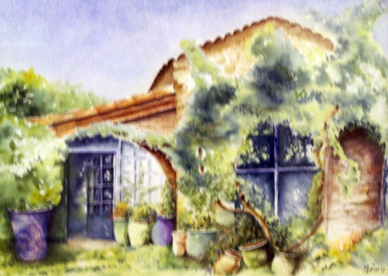 L’après-midi s’est étirée entre la sieste, les boules, la lecture et, bien sûr, l’aquarelle pour l’équipe de peintres amateurs qui n’avait que l’embarras du choix entre le paysage majestueux des lieux et le charme de la maison de leurs hôtes.