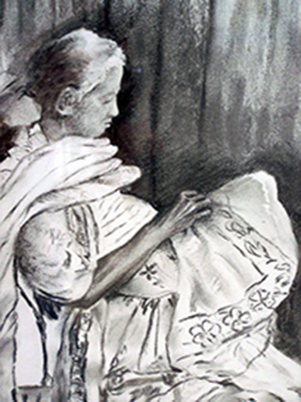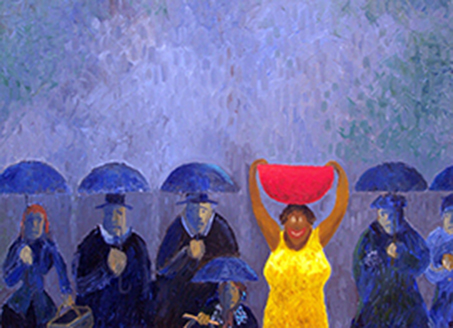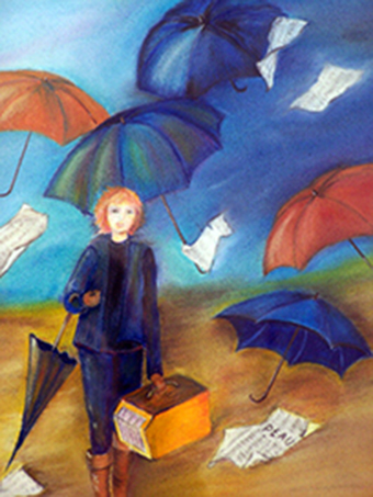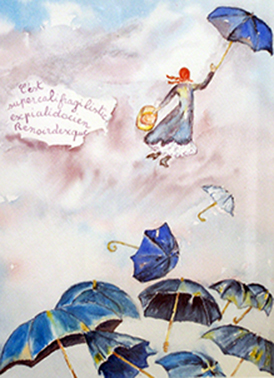 Huiles, aquarelles, acrylique, pastel, crayon, collage…..l’œil rebondissait d’oiseau en cascade, de boulangers en parapluies, de bateaux en fillette priant, de chien en paysage, de geisha en vierge à l’enfant, de danseuse en bord de mer, de Bécassine en Mary Poppins, de fleur en vieux marin…