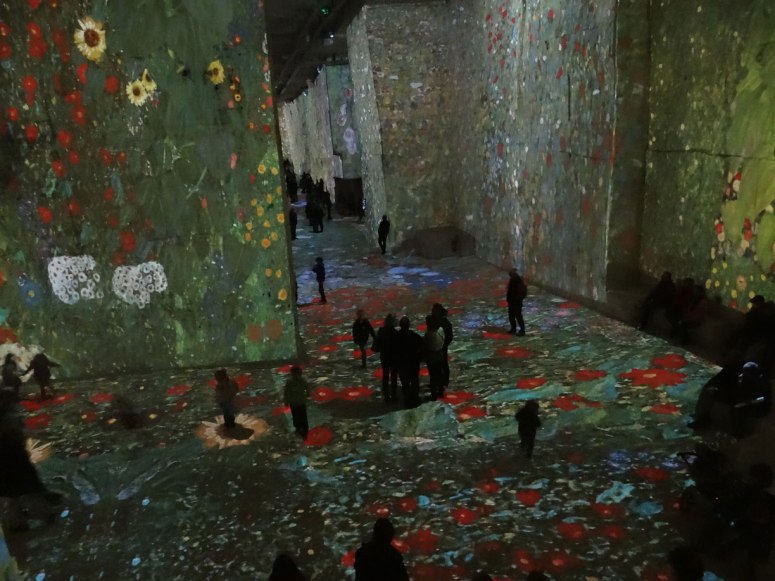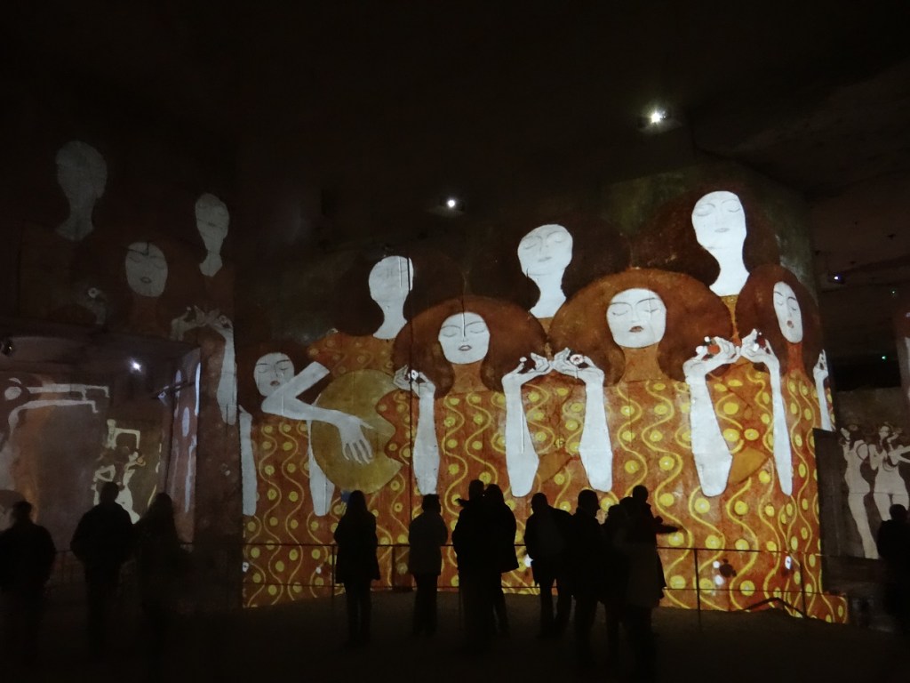Dans la pénombre des carrières nous étions invités au voyage…en Autriche ! Le spectacle « Klimt et Vienne, un siècle d’or et de couleurs » traverse 100 ans de peinture viennoise grâce aux oeuvres colorées et lumineuses de Gustav Klimt, de ses contemporains et de ceux qu’il a inspirés.