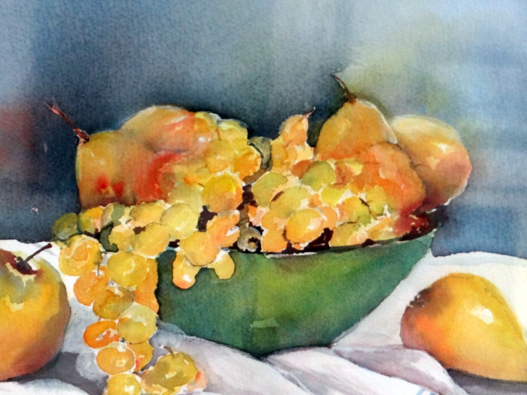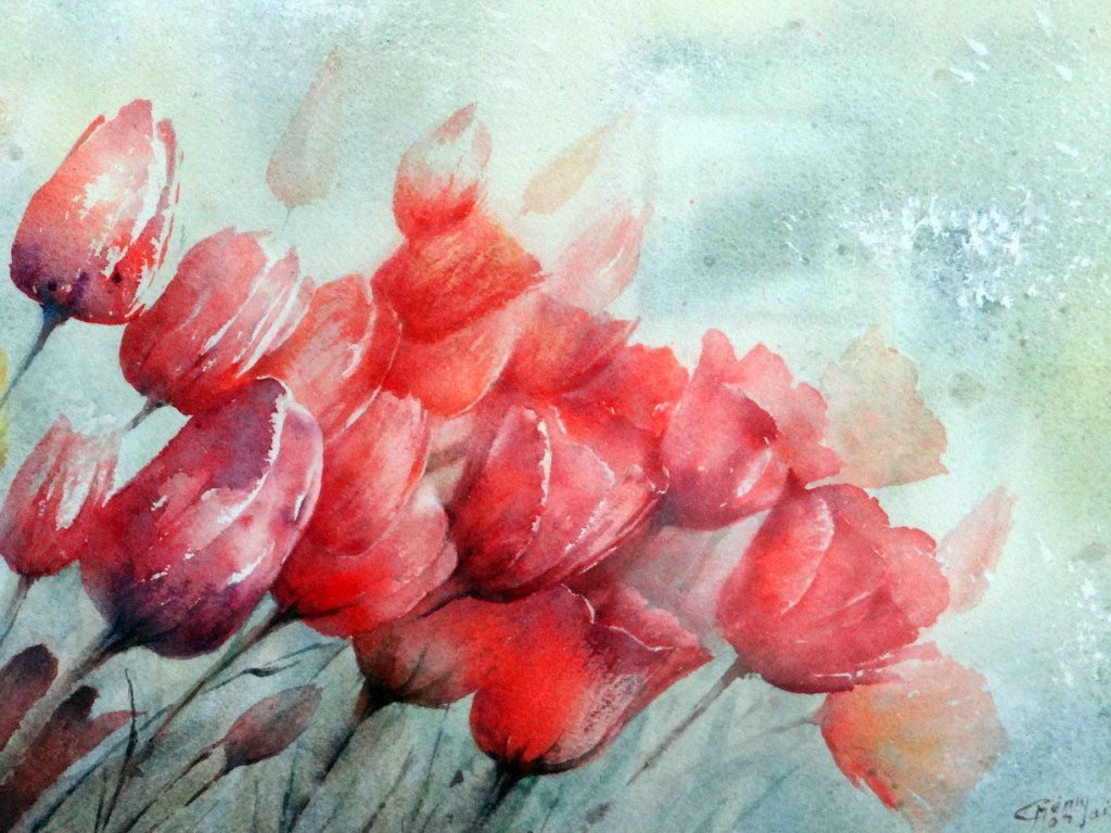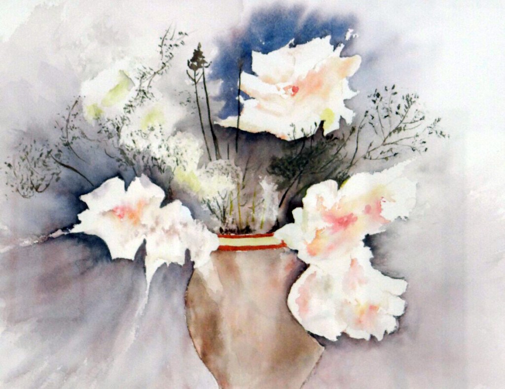 Nous sommes partis bien décidés à affûter nos pinceaux, détremper nos papiers, mélanger ces satanées couleurs qui ne se laissent pas dompter facilement et y mettre tout notre cœur … et surtout ne pas se décourager !