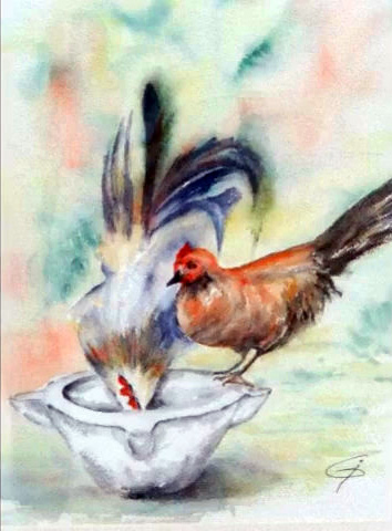 Il y avait des créations d’après des photos, des œuvres inspirées de peintres connus ou pas, et des œuvres d’imagination.Certains ont retrouvé des sujets déjà vus mais toujours traités de manière personnelle (n’oublions pas que nous sommes d’abord un atelier).