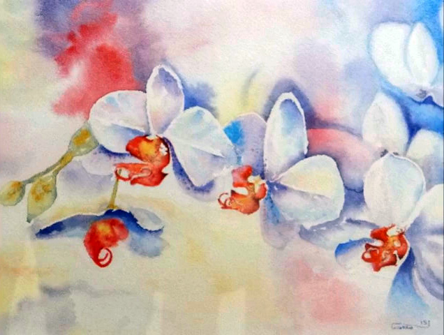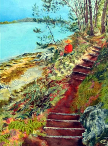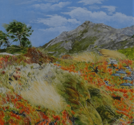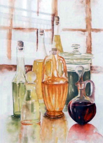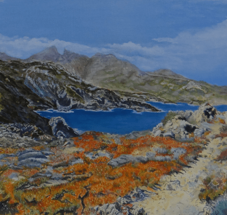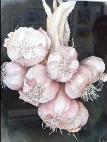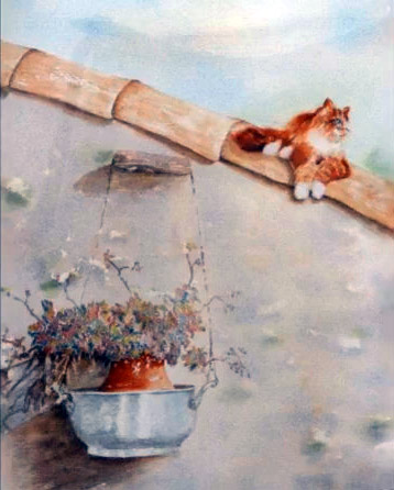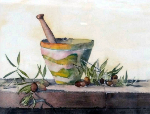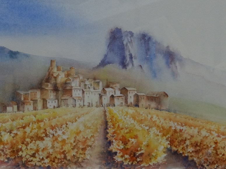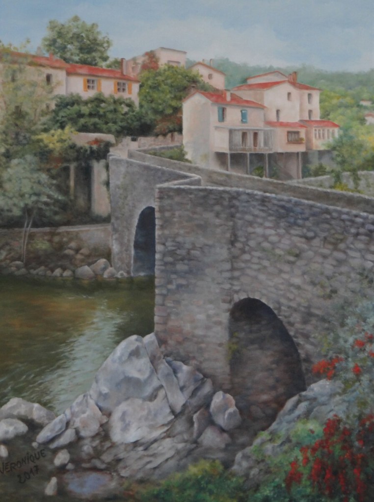 Une bonne centaine d’œuvres était présentée…aquarelle, huile, fusain,crayon, pastel et même feutre à l’eau…en ribambelle bien organisée autour de la pièce et sur des présentoirs centraux, avec ça et là des bouquets champêtres (lauriers roses, genêts odorants) prélevés dans la campagne ou dans les jardins)…