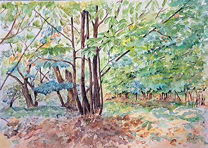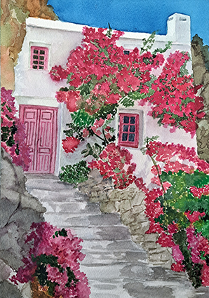 Une fois encore le temple était autour de nous, nimbant de sa douce lumière nos créations picturales. La grosse chaleur était aussi de la partie et nous a amenés à nous poser la question de choisir une autre période pour l’exposition.