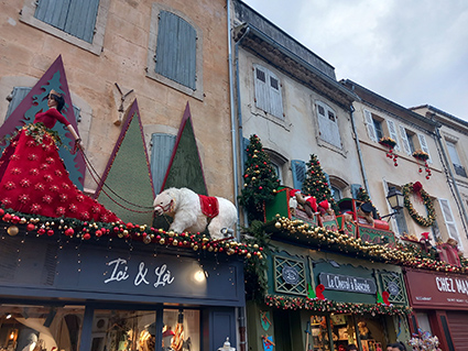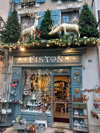 Avant de repartir vers nos maisons bien chauffées, nous avons déambulé dans la ville et découvert les façades des petits commerces débordant de créativité, de feuillages, de sapins de Noël et de décorations très personnalisées.